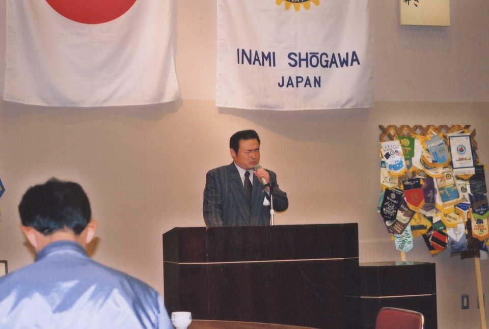 2002.11.27 卓話「ロータリー奉仕劇団結成について」小西勝会員 小西会員は、昨年、井波庄川ロータリークラブとジョイントで、近くの特養いなみやケアポート庄川を慰問した八乙女一座とは別に、ロータリークラブ会員の劇団を結成し、奉仕活動を呼びかけました。