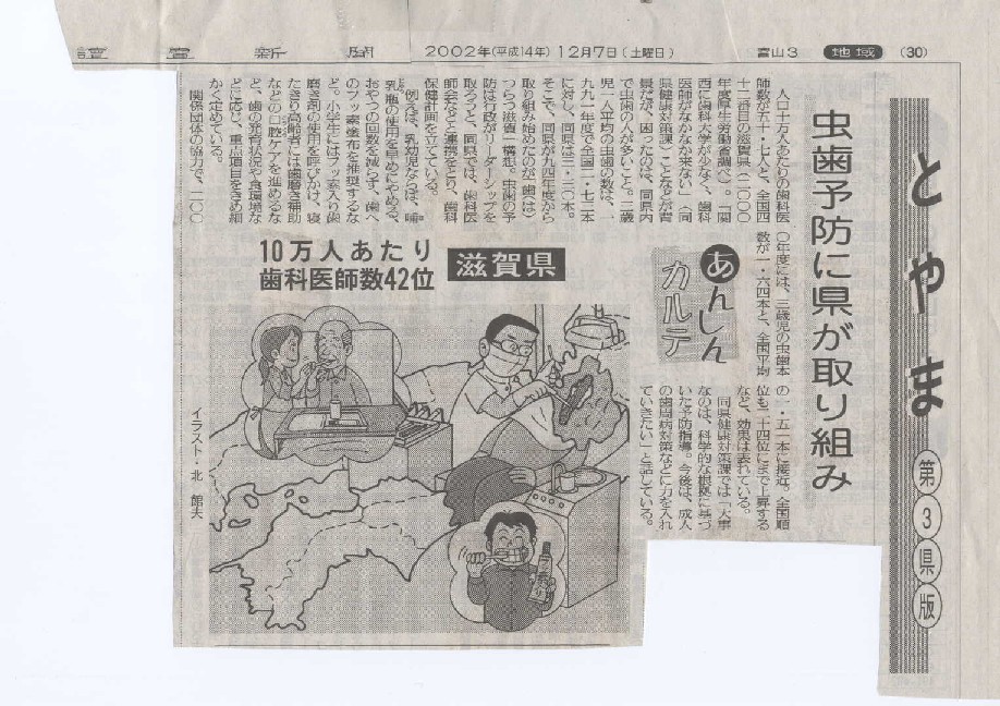 読売新聞富山版 2002年12月7日(土)とやま第3県版 『あんしんカルテ』欄