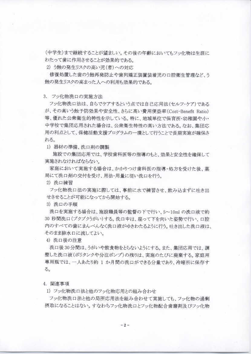 「フッ化物洗口ガイドライン」について(下記に添付:書類画像にて)