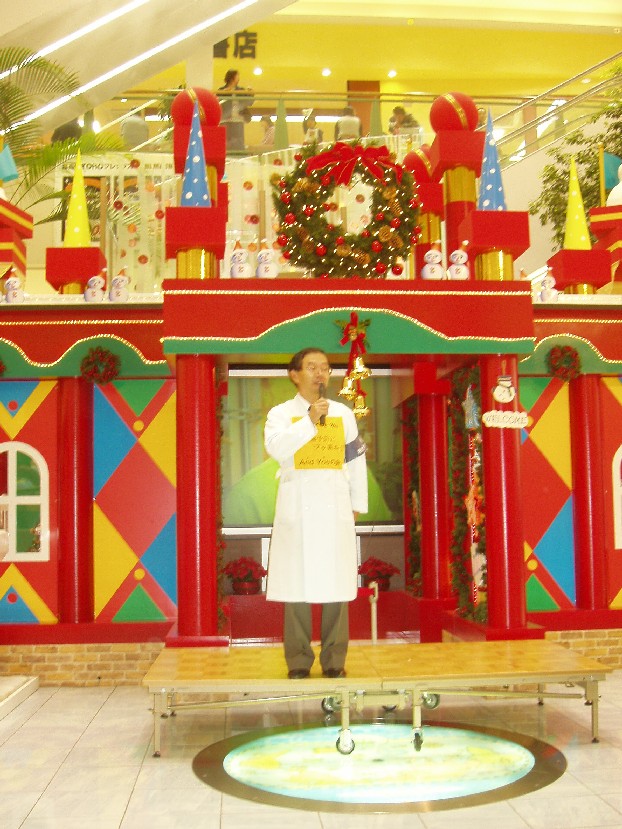 | キャンペーンのイベント @ 2時 挨拶「いい歯の日キャンペーンについて、And You (あゆ)の会について」(山本) A 2時10分 講話「むし歯予防とフッ化物応用」(沖田先生) B 2時20分 ビデオ「フッ君大活躍」 C 2時40分 ビデオ「永久歯のむし歯予防」 D 3時5分 挨拶「ロータリークラブと社会奉仕活動」(井波庄川ロータリークラブ会長) E 3時10分 紙芝居「かけがいのない命 みんなにとって 大事なこと」(8020プロ企画)(約20分)(精田紀代美さん) F 3時35分 歯科衛生士による歯磨き体操(約14−5分)(山本歯科スタッフ) G 3時55分 講話「だれにでもできる 小さな努力で 確かな効果―水道水フロリデーション―」(約10分)(山本) H 4時10分 ビデオ「フッ君大活躍」 I 4時30分 終了挨拶(山本) |