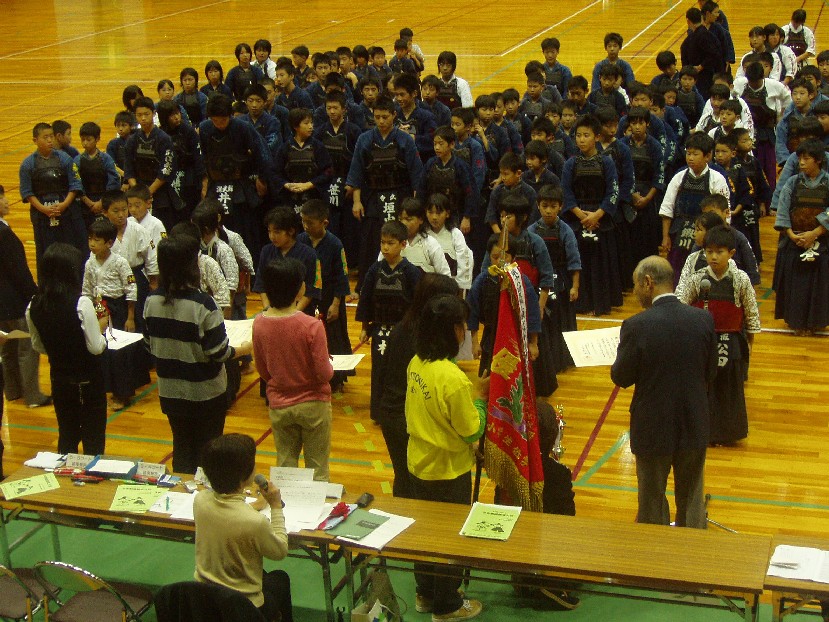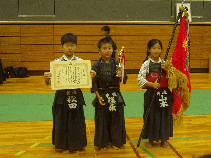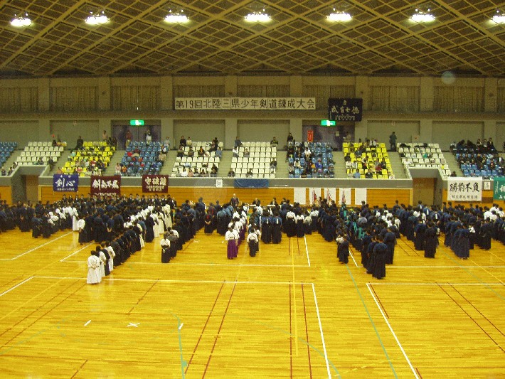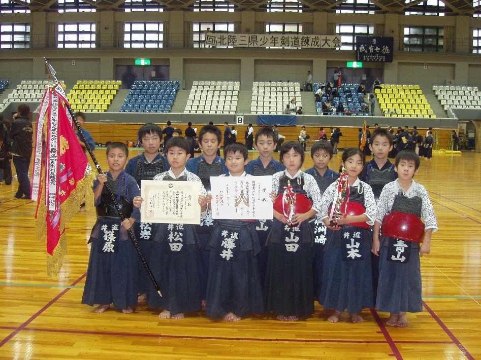 金沢市総合体育館で開催された、上記の大会で、井波町剣道スポーツ少年団が、中学校の部、小学校高学年の部、小学校低学年の部に、それぞれ1,1,2の計4チームが出場しました。末娘の出場した小学校低学年の部で、所属したAチームが、見事優勝、Bチームは健闘、ベスト8に進み、敢闘賞を受賞しました。井波町としては、この大会の優勝はどのクラスでも、初めての出来事。
