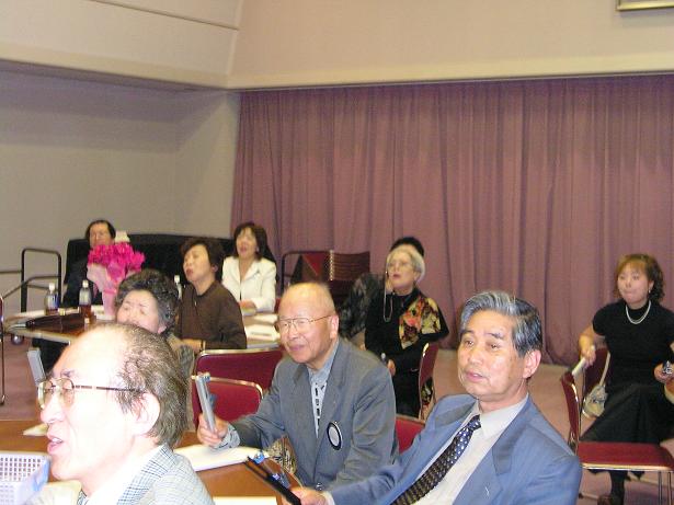 | 卓話のテーマは「音楽と人・そして心」で、@音楽療法の定義、A音楽の生理的、心理的、社会的働き、B音楽の活用の方法、C音楽療法の意味のついて、講演をされた。その中で、聖路加国際病院理事長の日野原重明先生の「現代医療と音楽の心」を引用され、病む患者に音楽の果たす「癒しの力」の重要性を訴えられた。 実際に、聞いていい歌と感じた長渕剛の「人間」という歌のテープを聞かせてもらいいたり、「アメイジング・グレイス」という外国の歌をみんなで一緒にハミングしてすがすがしい気持ちになったりした。最後に元広島カープの鉄人衣笠幸雄の苦しいときに元気になった歌「見上げてごらん夜の星を」を参加者全員で、音さのような楽器と、紹介者ということでわたしが鉄琴の下だけあるような楽器(風鈴を並べてような)を演奏して楽しんだ。 終わったあとの感想は、とてもさわやかな気持ちになってよかったね、とくしくもある会員に言われたその通りだった。 |