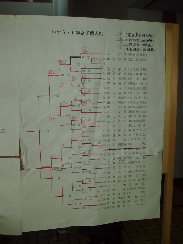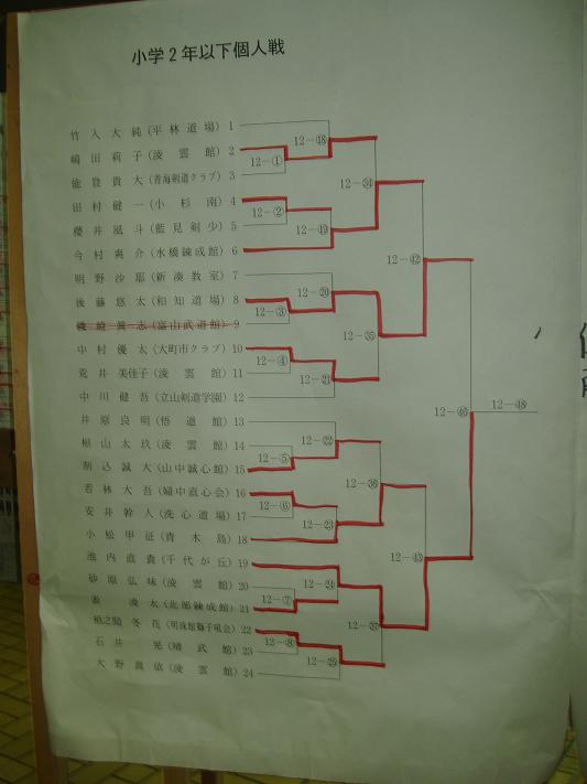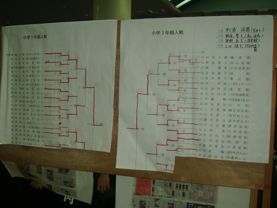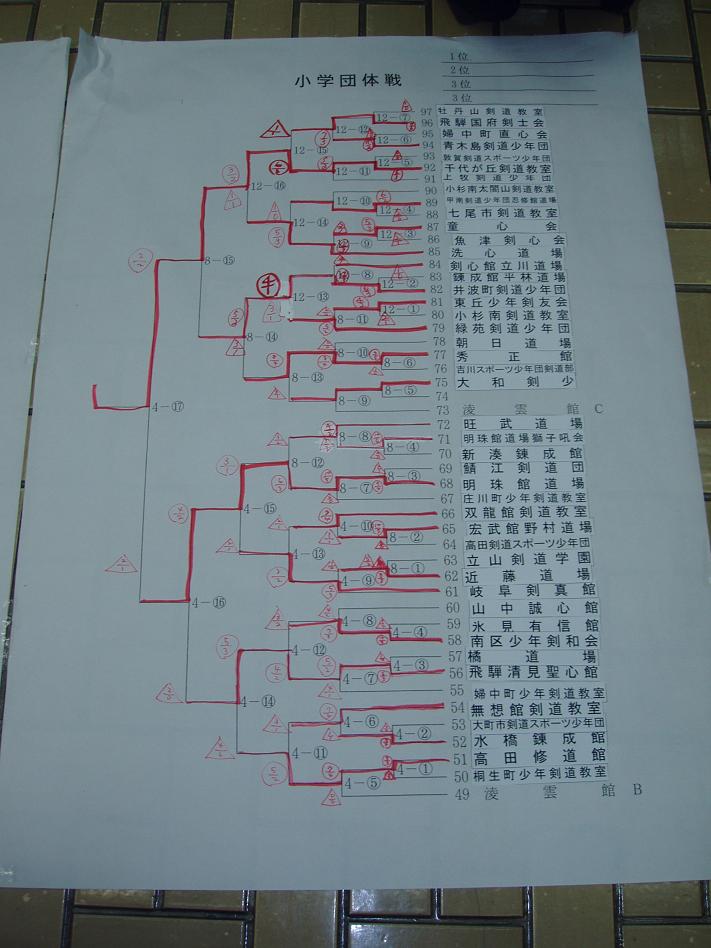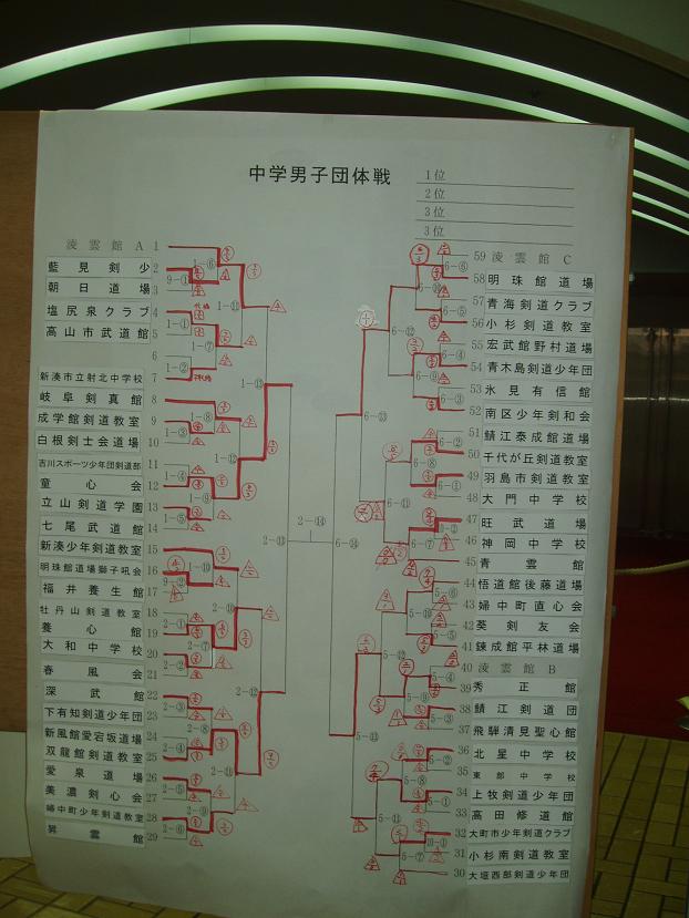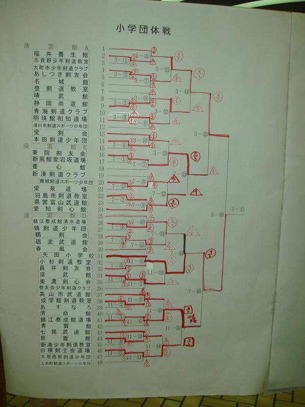 第28回凌雲館幼少年親善剣道富山大会結果一覧(ボードよりデジカメで撮影)