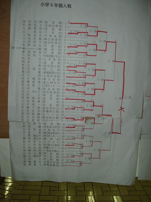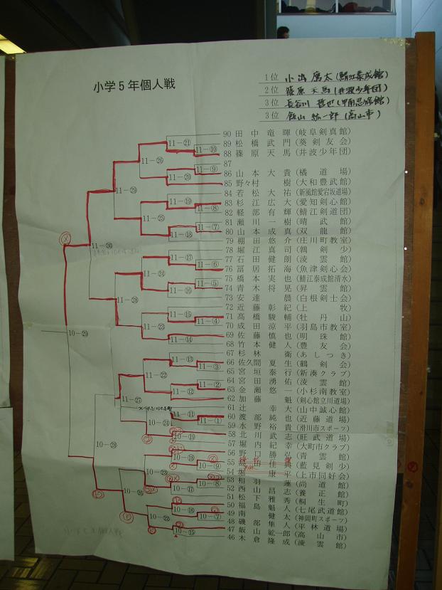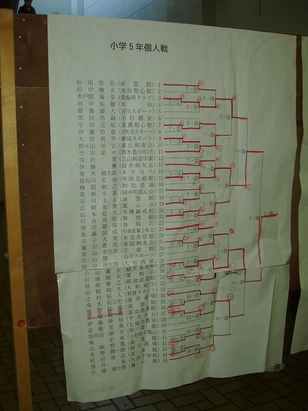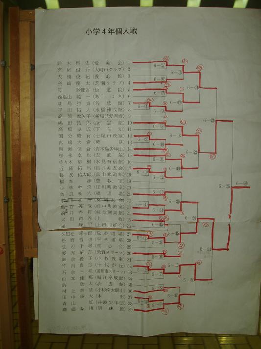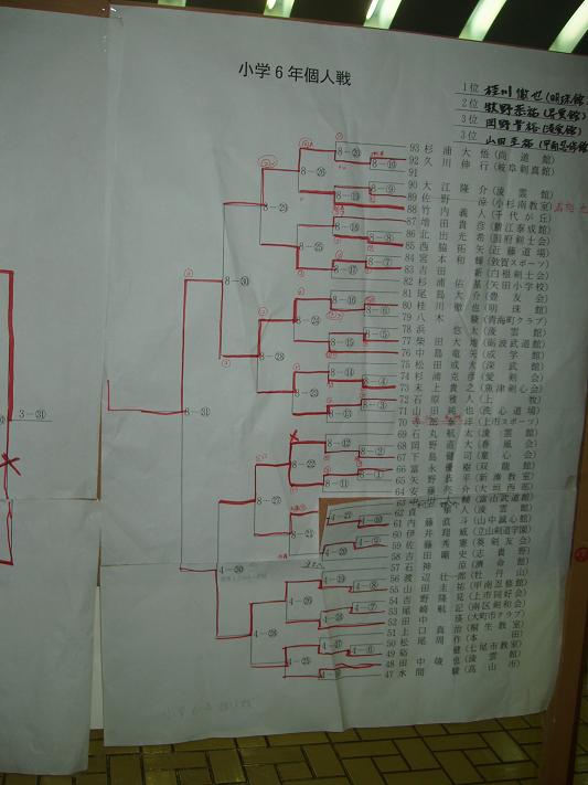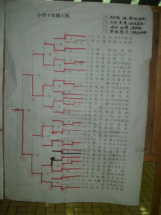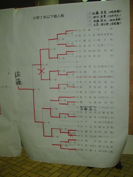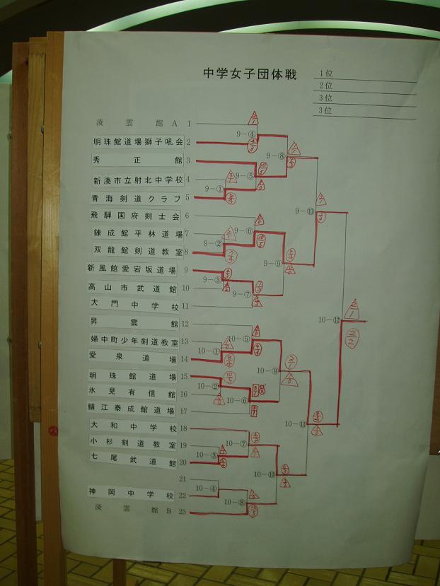 第28回凌雲館幼少年親善剣道富山大会結果一覧(ボードよりデジカメで撮影)