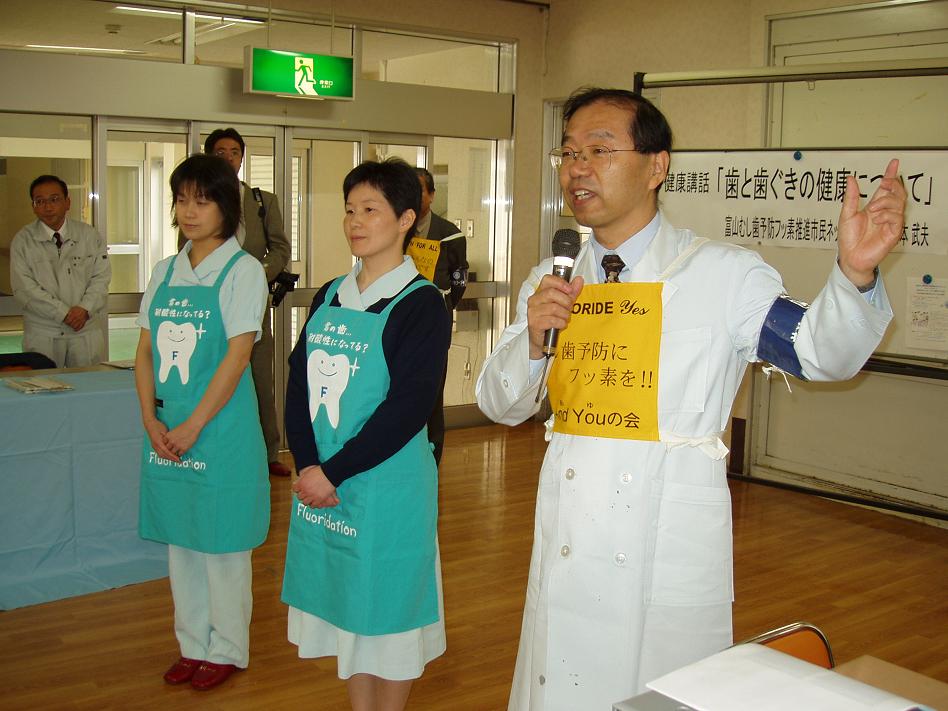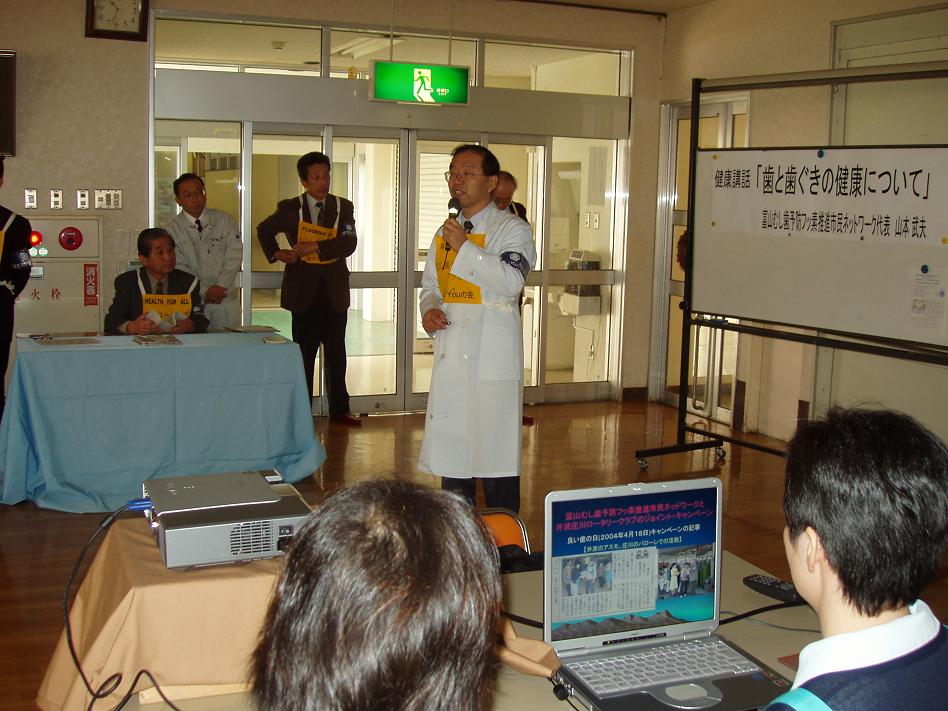 2006年(平成18年)4月18日 南砺市(旧井波町)谷にあります、授産ホーム「マーシ園」を、富山むし歯予防フッ素推進市民ネットワーク[And You (あゆ) の会]と、井波庄川ロータリークラブ劇団「はぐるま」が、協力して訪問して、キャンペーン活動を行いました。