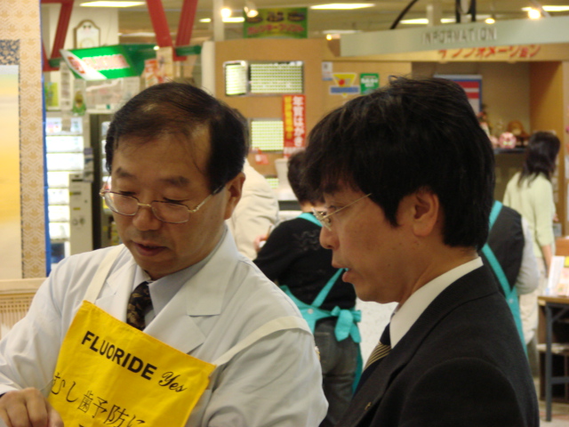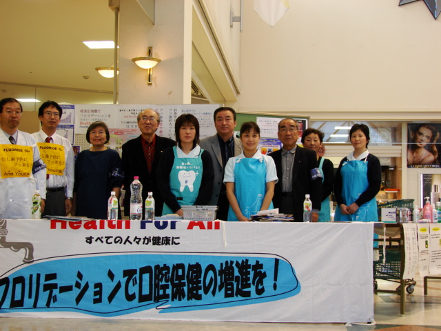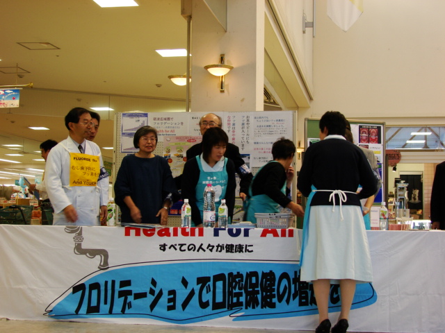 虫歯予防に対するフッ素の効能などを紹介し、歯磨き剤、洗口剤などを展示。買い物客にフッ素に関する知識を尋ねるアンケートを行い、健康相談に応じた。