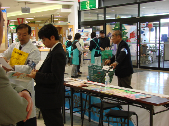 過疎化の進む地域で、お昼過ぎ(午後0時半〜1時半:ロータリークラブの活動にあわせたため)の所為か、高齢者の客が多く、昨年のイオン高岡店のジャスコ入口とは明らかに客層が違っておりました。