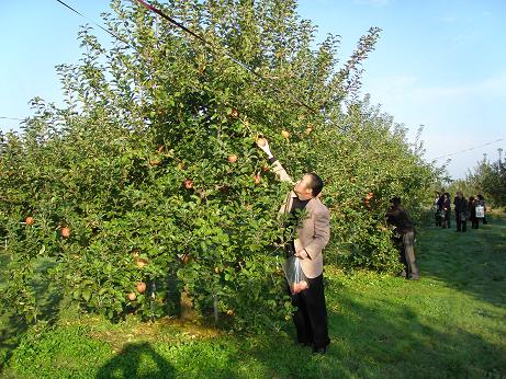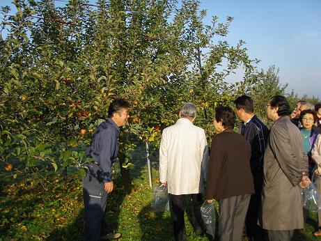 ![]() りんご狩り風景1・・・斉藤さんの「おいしいりんごの見分け方」談 |