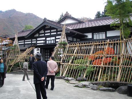 ![]() 六日町温泉、純和風建築の「龍言」の玄関で |