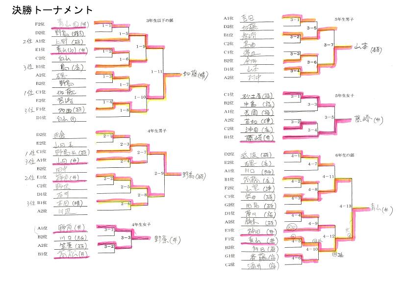 | 今年の砺波地区の大会は、井波剣道スポ少の参加者全員が、予選リーグを突破し、決勝トーナメントに勝ち進んだ。 3年生の青山姉妹は、今大会初出場。ベスト8に二人そろって入り、将来に期待したい。小4女子は、野原果鈴が、嬉しい初優勝。 昨年、藤崎美奈里が初優勝したのに続いた。高松明日香も3位で、二人で頑張ってほしい。 小4男子は、市体に続いて、井波勢が野島(砺波)に屈し、篠原風斗が次勝、山田誠一が3位。 小5女子は、最近自信をつけてきた藤崎美奈里が昨年に続いて、連覇。 小6は、準決勝で、青山虹・神田佳典の井波勢が顔をあわせ、延長の末、小手を決めた青山が決勝でも延長で柴田(砺波)を破って優勝。 神田は惜しくも3位。 小3以下 青山若葉、青山萌 決勝トーナメント2回戦敗退(両者ともに ベスト8) 小4女子 野原果鈴 優勝、高松明日香 3位 小4男子 篠原風斗 次勝、山田誠一 3位・・・・澤宗馬(風邪欠場) 小5女子 藤崎美奈里 優勝(昨年に続く) 小6 青山虹 優勝(昨年に続く)、神田佳典 3位 |