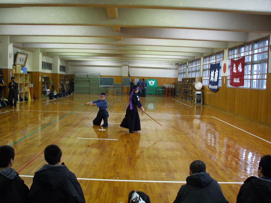 小学5年の青山虹、神田佳典の剣道型披露