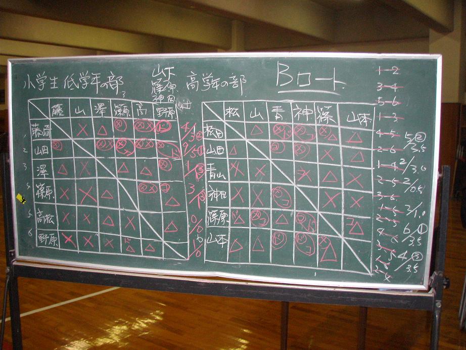 小学生の結果、低学年は山田誠一君圧勝、高学年は、6年生の大接戦(本数差)で、篠原天馬君の優勝。