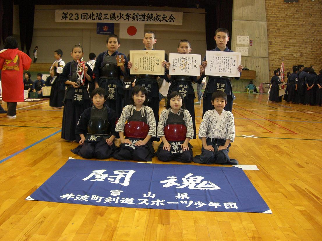 | 今年の、北陸三県の大会は、3年前と同じく敦賀市で開催されました。あの日は、大雪の日で、高速の除雪車に道を塞がれ、開会式の前年小学生低学年の部の優勝旗返還に間に合わず、試合開始直前に到着するも、アップ無しで敢え無く1回戦で敗れてしまいました。 今年は、3年前の総合公園体育館でなく、気比の松原の近く、敦賀市体育館で、開催されました。今年も、高速に乗ってから、腹痛や吐き気など、体調不良を訴える人が出たり、会場を間違えたりでなんとなく不吉な予感がしていました。無事体育館に着いたものの、プログラムを見て、石川県からの出場がほとんど無く、昨年来の剣道関係者の不協和音がそのまま反映されており、1父兄としては純粋に残念に思いました。大会に参加したいであろう、子供達の気持ちを、関係者はなんと考えておられるのだろうと、早期の解決を祈るばかりです。 さて、大会は、小学生高学年が、6年生二人に4年生3人という構成で臨んだにもかかわらず、大健闘、なんと勝ちあがって決勝戦にまで駒を進めました。5年生の副将、藤崎美奈里のケガでの欠場を、4年生の一番小柄な澤宗馬が代役を、見事穴埋め、主勲功の大活躍でした。各自がそれぞれ持ち味を出しましたが、特に、先鋒の篠原風斗は、準決勝で2本勝ちし勢いに乗せました。次鋒の山田誠一は、3回戦で、いきなり面を先制されたが、落ち着いて小手を返し、流れをひきもどし、準々決勝と準決勝の勝ちにつなげました。中堅の神田佳典は、中盤で以前のような崩れることなく試合の流れを変えることなく、副将につなげ、チームの勝利に貢献しました。欲を言えば、3回戦や決勝は、はるかに攻撃が上回っていただけに、確実に勝ちきってほしかったです。副将の澤宗馬は、3回戦で、大柄な相手に巧みにも抜き胴を決め、試合を振り出しに戻し大将につなぐ大金星。また、準々決勝でも、さらに中学生のような背の高い相手に抜き胴で先制したときは、会場全体から大きな拍手が起きました。決勝でも惜しくも引き分けましたが、充分に力を発揮しました。大将の青山虹は、あづみのの大会に参加して、一皮向けた試合運びをしていました。落ち着いて相手を見ることが出来てきていました。準優勝の嬉しさを一番感じているかもしれません。(いや、昨年優勝して返還した優勝旗を持ち帰れず、一番悔しい思いをしているのかもしれませんの、間違いでした。) 小学生低学年は、中山智祐がデビュー戦で、一生懸命頑張るも惜しくも1本負け、青山姉妹も、強豪相手に頑張りましたチームは、残念ながら負け、次回に期待したいものです。やはり、低学年で勝ち上がるには、もう少し試合慣れが必要なのかもしれません。(昨年優勝した学年や、4年前の学年は少しは場数を踏んでいたようです。) 中学生は、Aチームが、2回戦で準優勝の凌雲館(堀川中学)に、惜しいところで踏ん張れず敗退、全中に向けて最後には倒すように頑張ってほしいものです。この試合で、選手は試合終了10秒前の1本が、大きく流れを変える事を勉強したはずです。次鋒の金森君は、10秒前に返して追いつき引き分けに、中堅の斉藤君は、10秒前に返されて引き分けになりました。前者は大いに勇気付け、後者は大変がっくりチームの士気を落としました。これを全中に向けて生かす事が、大会での糧となります。 Bチームも、女子中心ながら、1回戦で全員男子のチームに戦いを挑み、先鋒の2本負けを、試合を壊すことなく、次鋒・中堅・副将と粘りながら大将につなぎました。特に副将の山田晴子は、負けたら終わりというところを声を大きく出しながら攻めながらも打たれず、いい戦いをしました。大将は相手は守り気味の中、押し気味試合を運んだが惜しくも1本勝しかできず試合に負けましたが、チームとしてのつながりを感じさせた試合でした。次の試合に向けて、いい経験になったと思います。(山本武夫:評) 小学生高学年 井波(篠原風斗・山田誠一・神田佳典・澤宗馬・青山虹)準優勝・・・決勝で小杉南に、0−2で敗れる 低学年 井波(青山若葉・中山智祐・青山萌) 2回戦敗退 中学生 井波A(篠原・金森・斉藤・洲崎・松田) 2回戦進出・・・準優勝の凌雲館に、0−3で敗れる 井波B(図所兄・図所妹・山田千・山田晴・山本) 1回戦敗退 |
