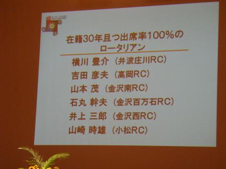 ![]() 横山豊介会員が、在籍30年出席率100%のロータリアンで表彰された |