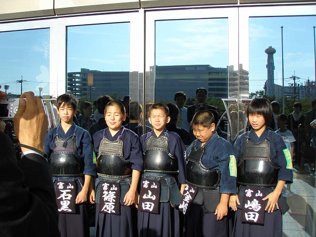 | 今年の第4回都道府県対抗少年剣道優勝大会は、3年前に続いて2回目の応援に行ってきました。3年前の小学生の部で、同じリーグに大阪Aチームがいて、残念ながら決勝トーナメントに進めませんでした。 中学生の部で、ほぼ3年前と同じメンバーで出場した今年は、少しは期待をしていました。前日の稽古会でも、大阪A・茨城・香川・三重と練習させてもらい、みなそれぞれにいい感触をつかんで臨んでいました。ところが、本番の当日は、予選リーグのどのチームもそれぞれ九州地区・中国地区・関東地区の強豪で、なかなか思うような試合運びをさせてもらえませんでした。さすがに各地区の激戦区を戦い抜いて来ている代表だけに勝負所を知った闘い方をしてきました。 富山県勢、来年こそは勝ち上がって決勝トーナメントにいけるよう頑張って下さい。 ![]() |
