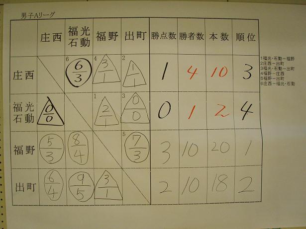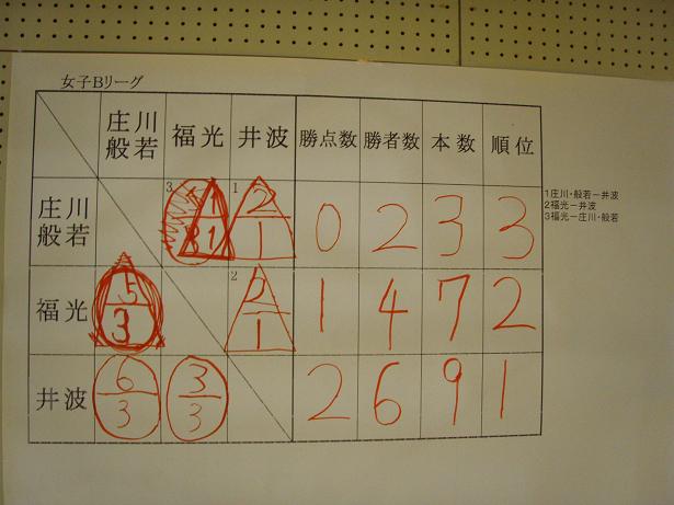 | \ | 庄・般 | 福光 | 井波 | 勝点 | 勝数 | 本数 | 順位 |