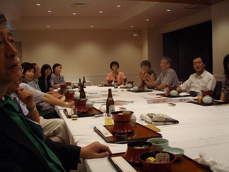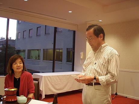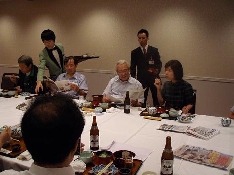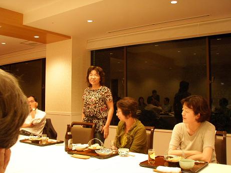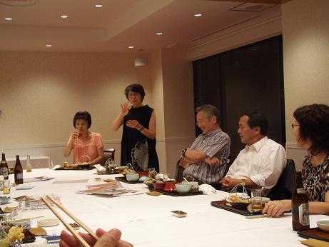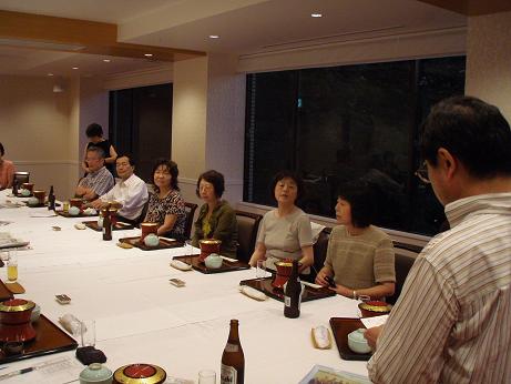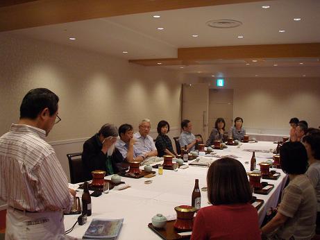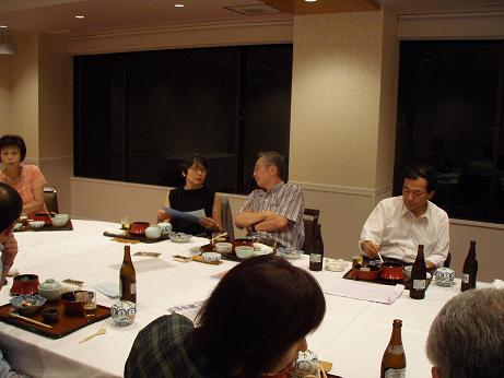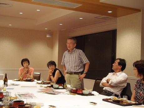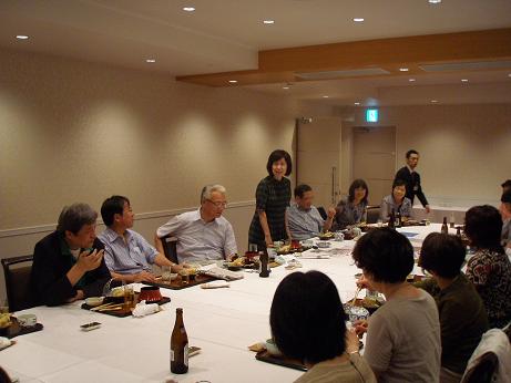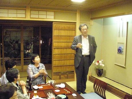 ![]() 「京都会館」での懇親会の開会、幹事で全てのお世話の置田文夫君 |