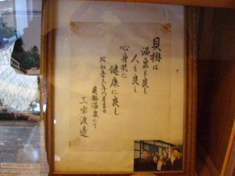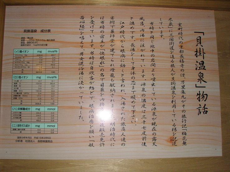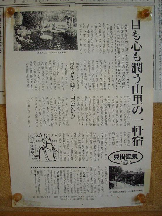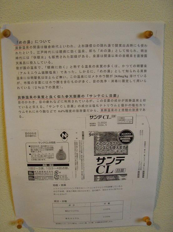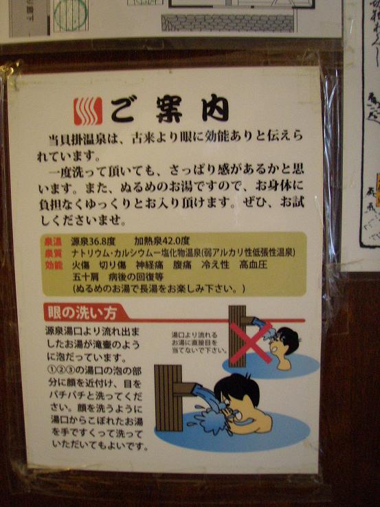 | 今年の井波庄川ロータリークラブ「秋の家族旅行」は、眼に良い越後湯沢の貝掛温泉に行ってきました。 ホウ酸の多い温泉ということで、マニアには絶賛の隠れ宿。関東から、お湯を汲みに日参するお客もいるそうです。 小生のような、眼の悩みを持つ人間にとっては、距離など関係ないようです(もう少し、近かったらなあ・・・)。 露天のぬるい湯(仁王様の下)で、時間のある限り、眼を洗ってきました(気持ち楽になったかな?) 露天風呂脇には、「目薬の木」が植わっていました(初めて知った!)。 人間の古くからの経験と知恵で、こんな温泉が見つかったことに感動して帰ってきました。(フッ素も、まあまあ含まれていて、歯にもいいし、リピーターになりそう・・・) |