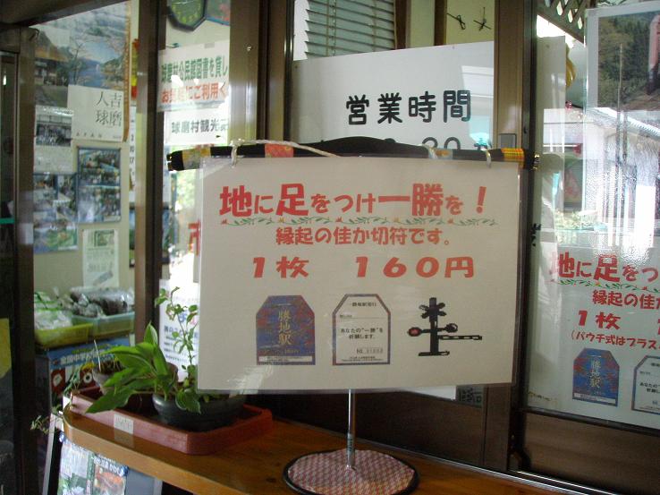 途中の、「一勝地駅」には、10分停車したので、必勝お守り(入場券)を選手分、買って来ました。