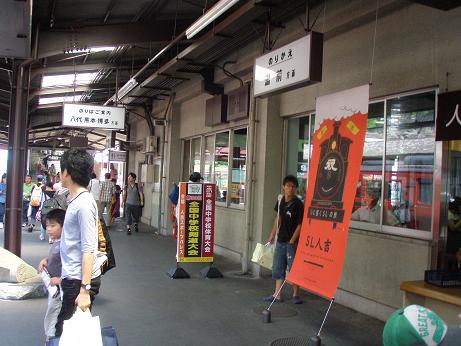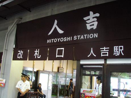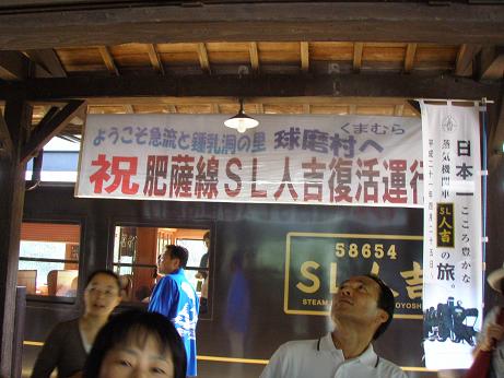 大会を歓迎する、人吉駅。 小さな町ですが、精一杯の歓迎でした。 |