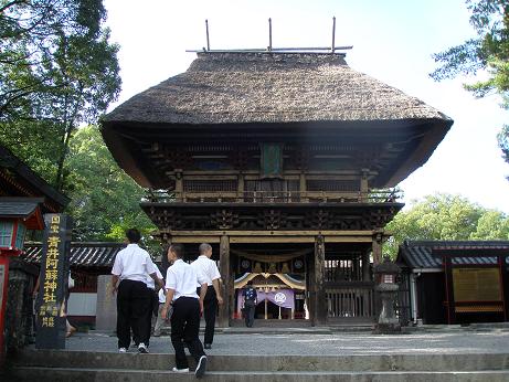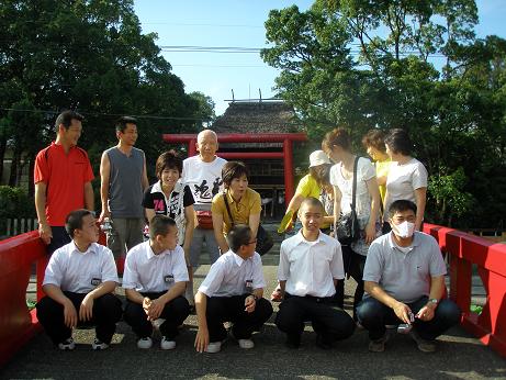 ![]() 大会2日目を終えて、会場近くの国宝:青井阿蘇神社前にて |