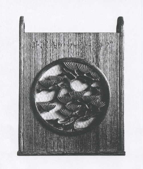 井波彫刻と庄川木工が私たちの特産であるからには歴史に残るものとして彫刻をはめこんだものにしました。彫刻部分は「松」を円窓に透かし彫りにして浮き上がって中が見える様にデザインして細かい彫刻が浮き上がって見える様に少し着色しました.箱の部分は欅の好材で作りました。上には投入口があり横側から取り出せるようになっています。 製作・横山豊介(会員・彫刻家) |