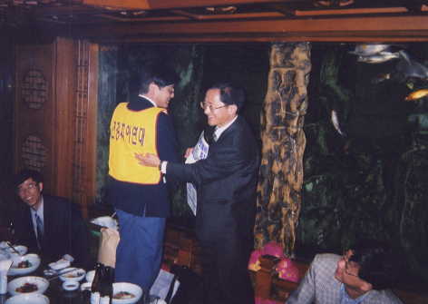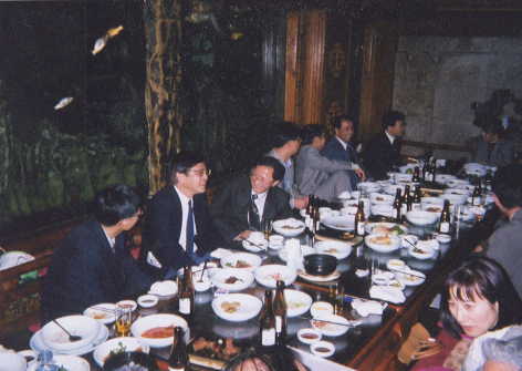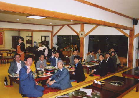 19日夜、鎮海市上水道管理事業所の視察後、釜山市内に戻って、釜山大学歯学部予防歯科学教室 金鎮範教授のお世話で、健康歯牙連帯との懇親会が釜山市内のレストランで開かれました。
