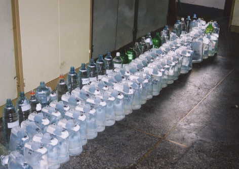 慶州の浄水場はやや古く、モニタリング装置も簡易式のものでした。この為、管理事務所の部屋の脇には、サンプリングのボトルがたくさん並んでいました。