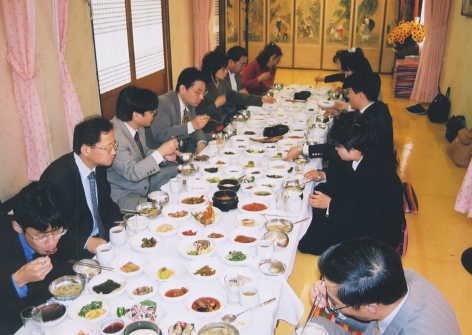 昼食は慶州の老舗のレストランで、ここでは、金鎮範釜山大学歯学部予防歯科学教室教授のご紹介で、金美京慶州市保健所長の歓待を受けました。