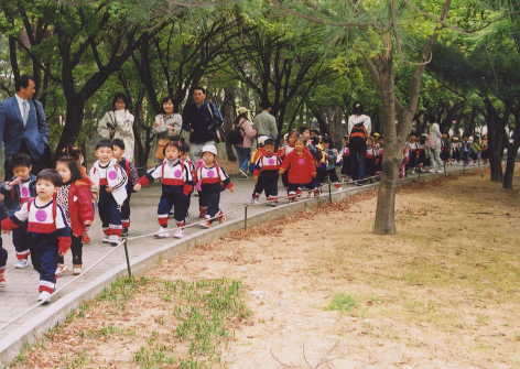 「天馬塚」のある公園は大変広く、地元の幼稚園児が遠足に来ていました。興味を持って園児に「アンニョン、ハセヨ(こんにちは!)」と声をかけて、口の中を覗いて見ました。大変きれいな状態で、乳臼歯にアマルガム充填している子がいましたが、前歯にむし歯を持っている子は見ませんでした。