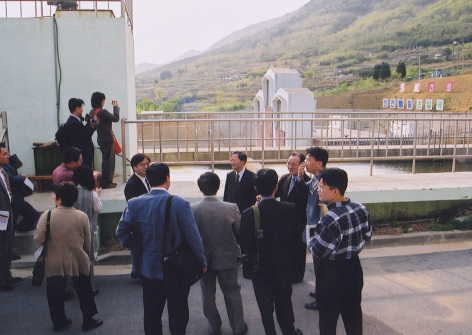 2001419日、一行は、福岡より飛行機でプサンに向かいました。午後3時過ぎ到着、案内役の釜山大学歯学部予防歯科学教室の金鎮範教授のお出迎えを受けました。金浦空港から1時間ほどマイクロバスに揺られ、入り江になっている地形のため韓国海軍基地のある鎮海市、石洞浄水場の上水道管理事業所(金淇瑩所長)を訪問致しました。