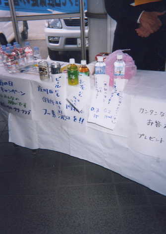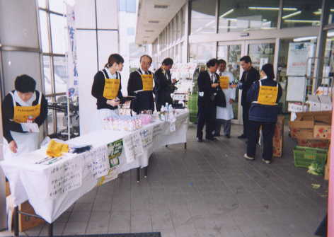 2002年4月18日午前11時30分〜午後0時20分(会場:リプロ庄川店) キャンペーンの会場の様子
