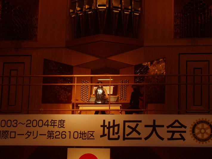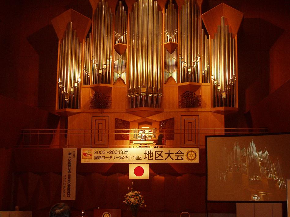 | 井波庄川ロータリークラブから、登録者17名の参加予定で、バスをチャーターしていきました。 会場の石川県立音楽堂は、金沢駅真前にあり、そのコンサートホールの素晴らしさには圧倒されました。 正面にある、パイプオルガンがはじめ、室内装飾のビッグなものと勘違いしていました。 お昼休憩の余興に、歓迎の演奏があり、バロック音楽の調べを勇壮なパイプオルガンの音色からうっとりと聞きほれてしまいました。 又、記念講演の上智大学教授の猪口邦子先生の話は、「新しい国際社会と日本の軍縮外交」という題で、大変素晴らしかったです。(講演抄録が待ち遠しいです) |