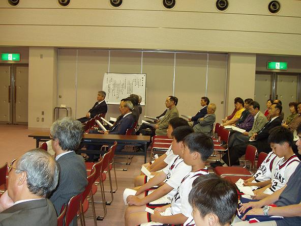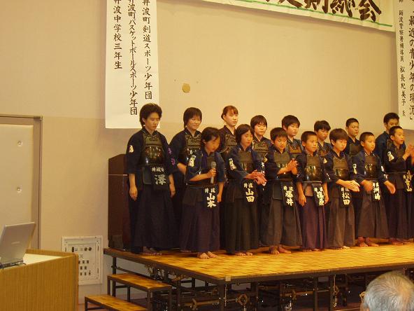 永井 亘、吉田雄哉、澤田佳大、岩崎将史、森 顕之、笠田樹生、松井良剛、才川絢也、川原直人の6年生9選手が日ごろのスポ少の活動について、報告しました。