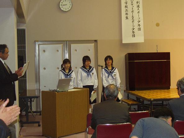 川原千佳さん、今藤みゆきさん、永井絢子さんが、井波中学生のボランティア活動を報告されました。