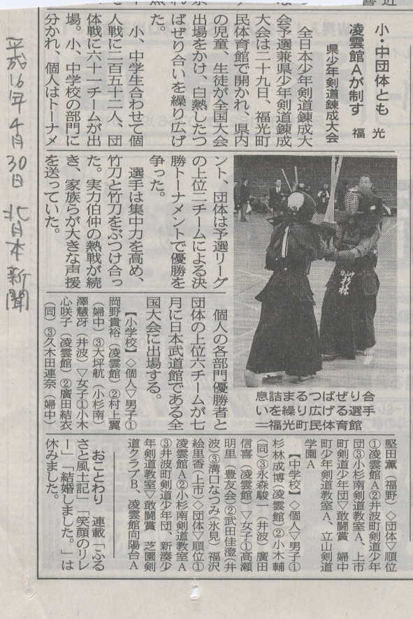 平成16年度 第39回全日本少年剣道練成大会富山県予選