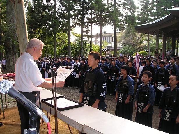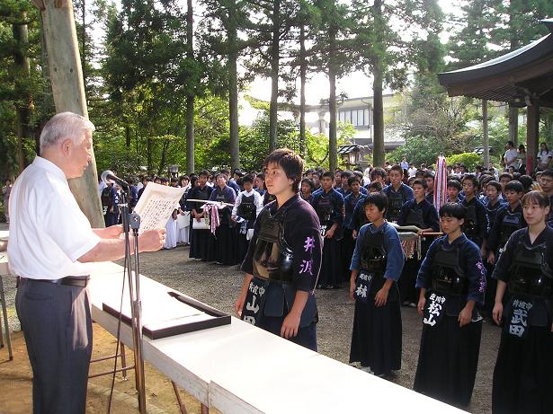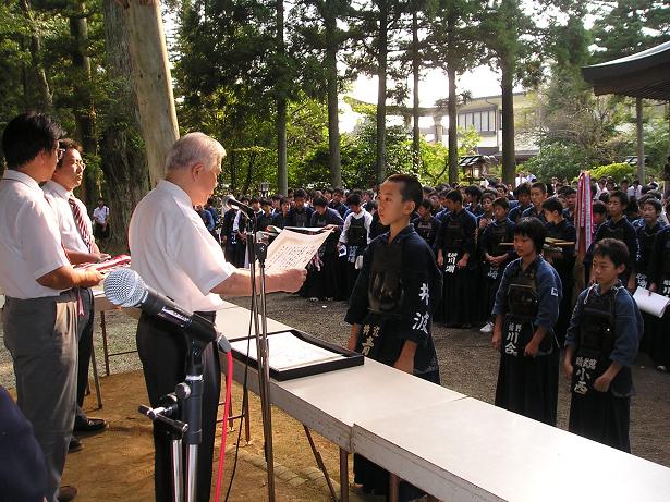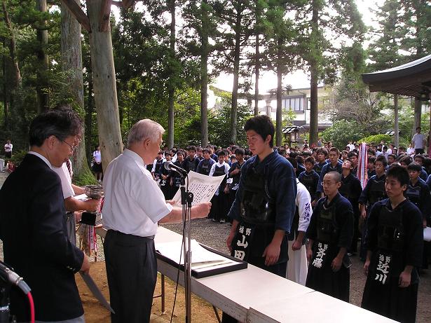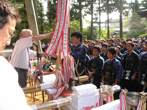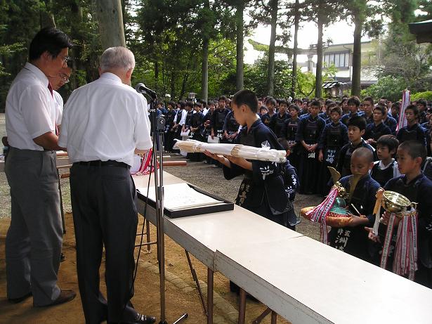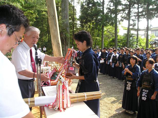 第42回越中一宮高瀬神社奉納剣道大会 入賞者表彰式の様子