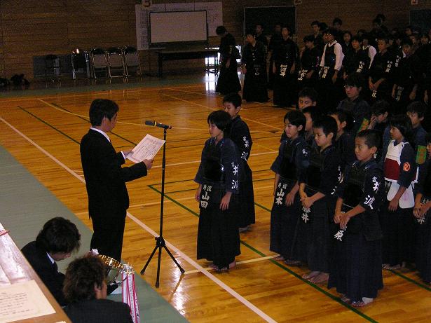 ![]() 「優勝、井波町・・・」「はいっ!」整列! |