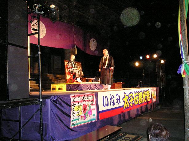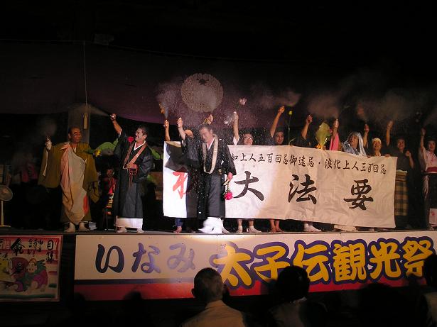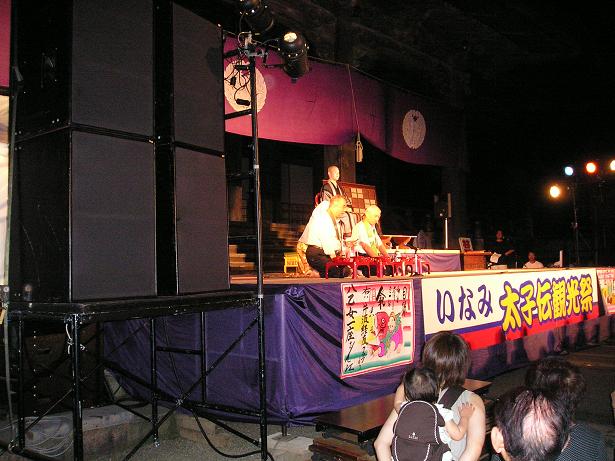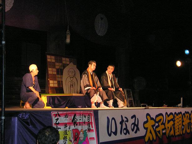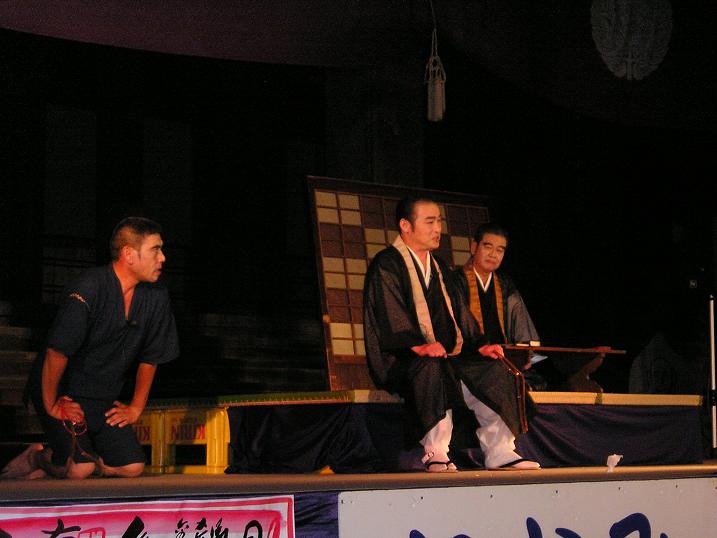 井波庄川ロータリークラブの劇団「はぐるま」小西勝座長が、演出。今年の演題は「真夏の雪」、井波御坊の瑞泉寺や福井吉崎御坊にもゆかりのある蓮如上人が、京都本願寺の跡目を継ぐ話です。
