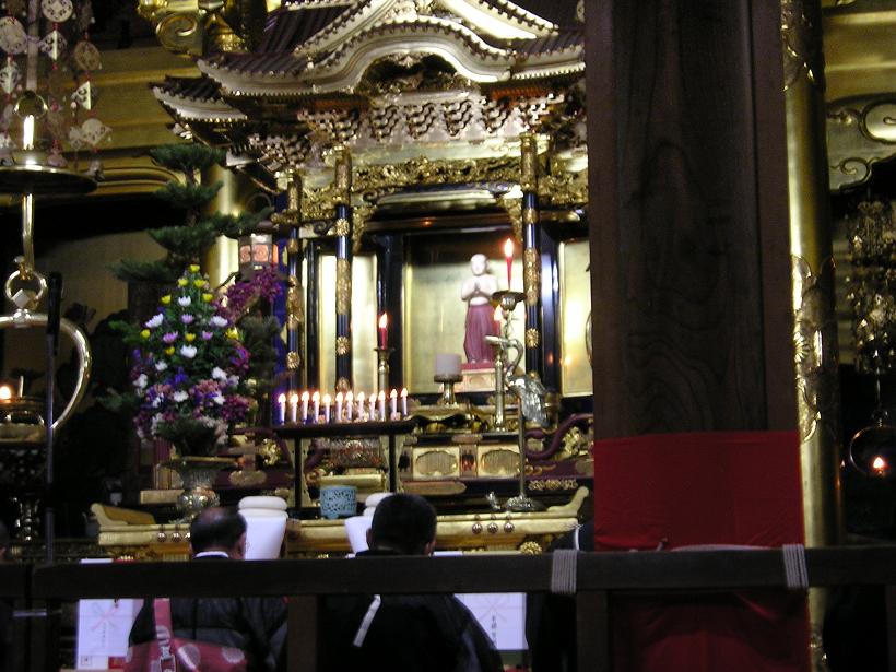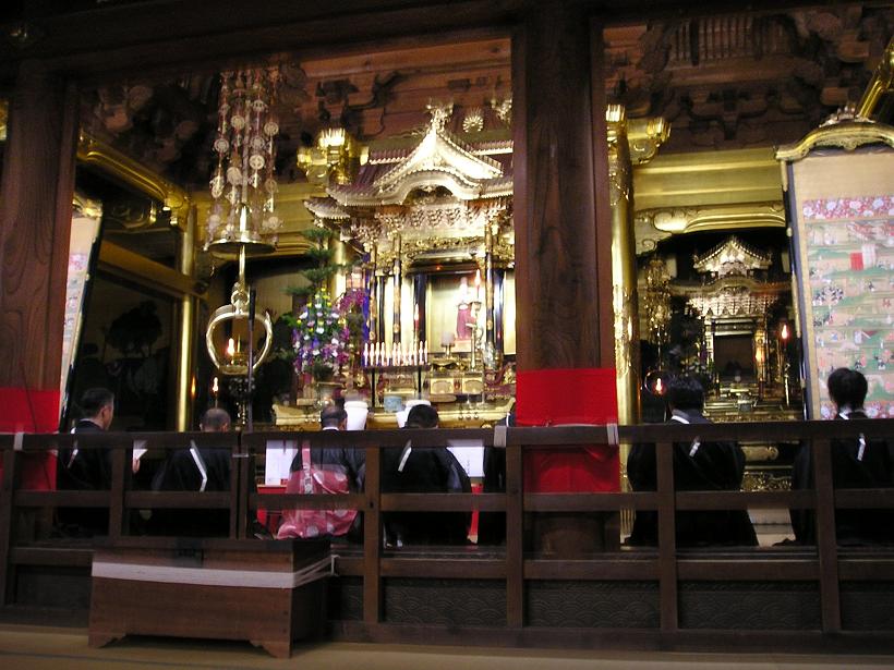 ![]() 夜間絵伝解説の後、最後のお経お勤め。 |