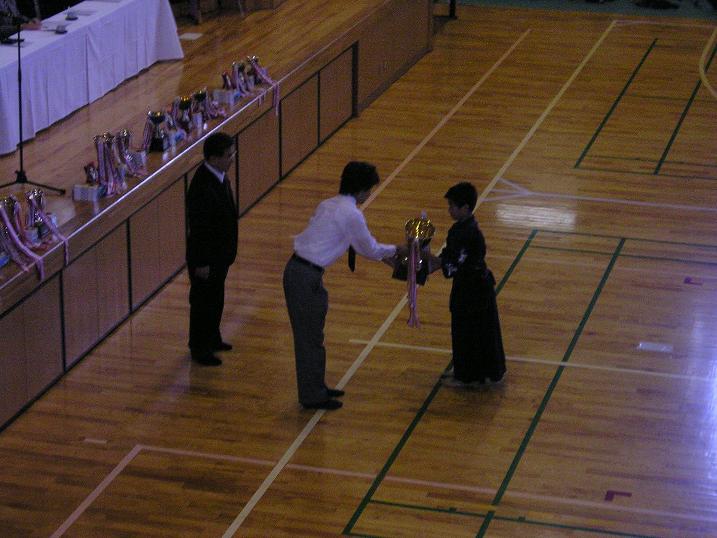 ![]() 昨年優勝杯(小学4年生以下)の返還(松田君) |