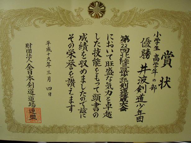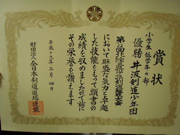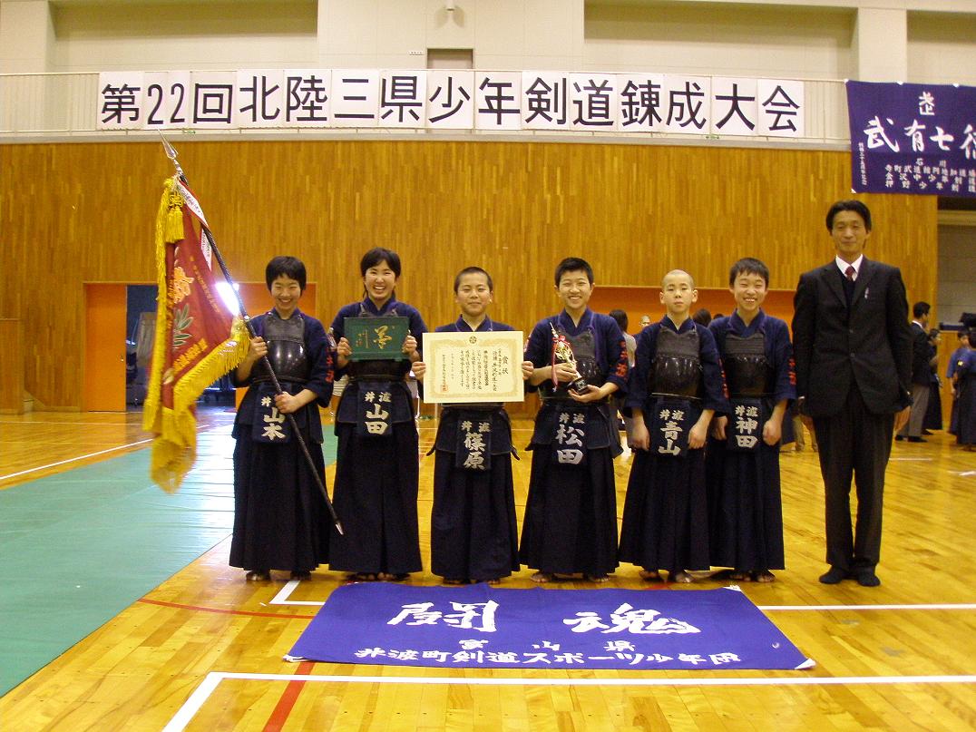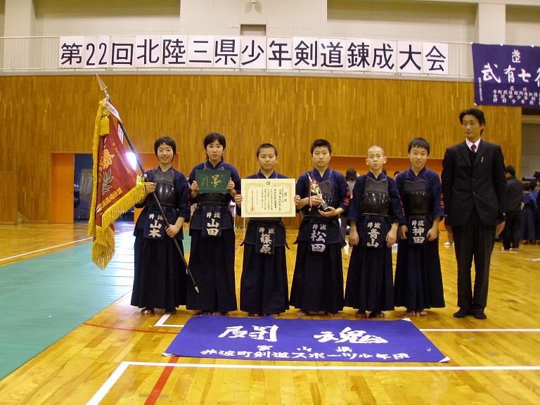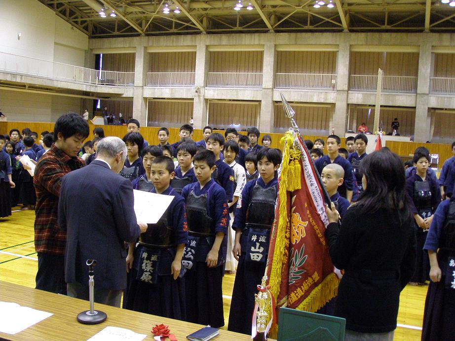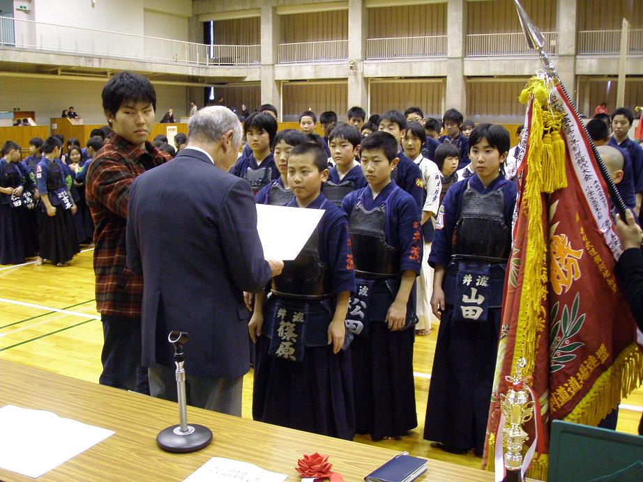 ![]() 表彰式・・・低学年優勝 井波剣道少年団(3年ぶり2度目) |