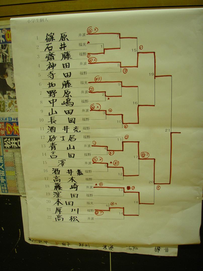 個人 小学生 青山虹:優勝(5勝) 神田佳典:次勝(3勝) 山田誠一:3位(3勝) 藤崎美奈里:3位(2勝) 澤宗馬:ベスト8(2勝) 篠原風斗:ベスト8(1勝) 野原果鈴:2回戦進出(1勝)