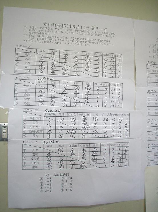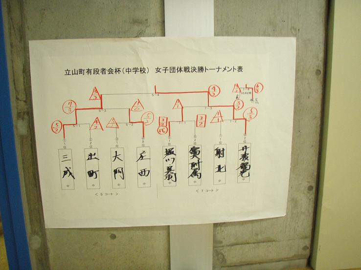 | 今年の立山大会には、井波スポ少は、立山町長杯(小6以下)のクラスと、立山有段者会杯(中学生)に男子と、女子の計3チームが参加した。 中学生女子は、4名なので、福光中の石井和(あい)選手を加え、井波・福光合同チームとして戦った。 結果は、少しの差が、明暗を分けた。 小学生チームは、予選で惜しくも2位となり、岐阜から参加の清見に最後、5人とも引き分け、勝点3.5で清見と並んだが、勝数差で惜しくも決勝トーナメントに進めず。 中学生男子は、予選を快調に勝ち上がったが、決勝トーナメント1回戦で、速星中に惜しくも破れ、敗退。 中学生女子は、予選、1年生ながら大将に強豪高瀬美咲選手を擁する三成中に破れ、2位で決勝トーナメントに進出。1回戦、射北中に勝ち、準決勝では、大将戦にもつれ込んだが、山本麻紗子選手が、相手の藤村選手に1本勝ちし、強豪の堀川・呉羽中を撃破した。決勝は予選で敗れている三成中と対戦。ここで、先鋒の石井和選手が活躍、中堅の山田千菜都選手と2本勝し、副将の主将山田晴子選手の引き分けで、大将戦(高瀬・山本戦)を前に勝利決定した。 井波は、今の中1の学年では、小4・小5と3回目の優勝、昨年の凌雲館に敗れた悔しさを晴らした。 成績表 |