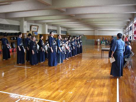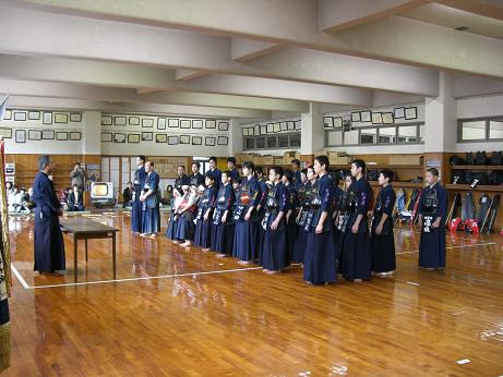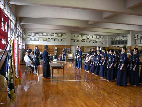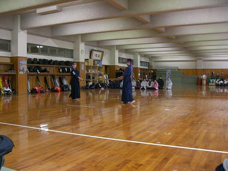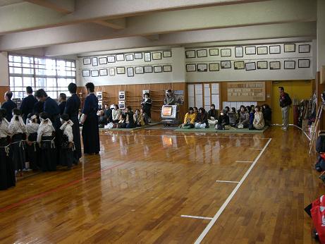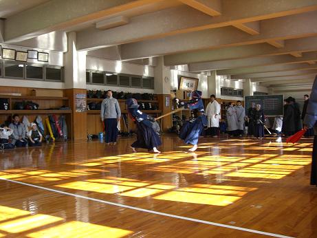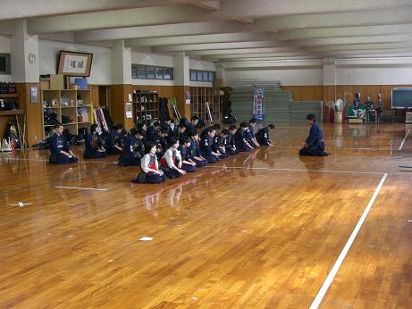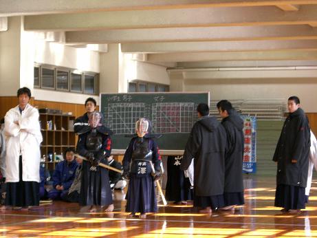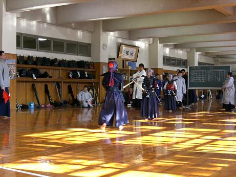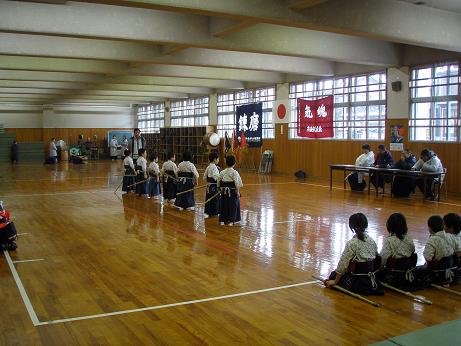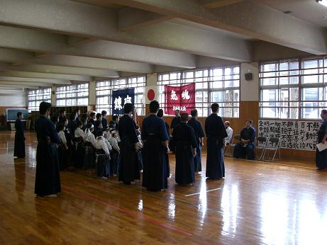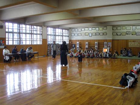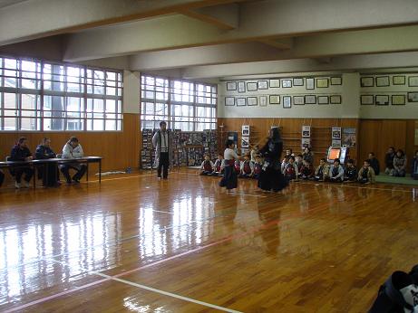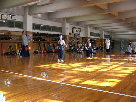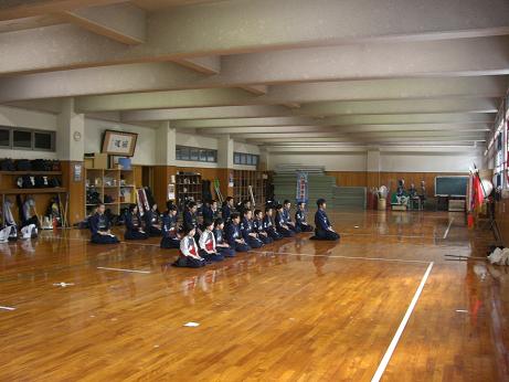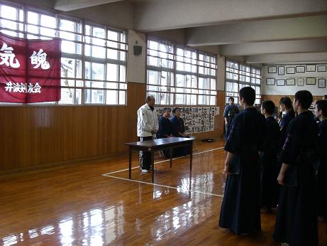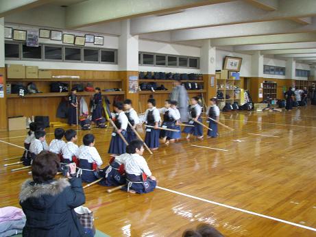 | 井波剣道大会 日程・・・平成20年2月10日(南砺市井波社会体育館武道場) 午前 ・級審査会 午後 ・稽古 ・開会式 苗加為雄井波剣友会会長:挨拶 久恵博明南砺市体育協会長(代理):祝辞 篠原正之先生:試合場の注意 ・級審査、認定状交付 ・剣道体験発表:藤崎美奈里 ・公開演武 剣道形:青山虹、神田佳典 居合形:松田尚之、篠原天馬、山田千菜都、山本麻紗子 ・キッズ面打ち披露 ・剣道大会 @小学生低学年 A小学生女子(リーグ戦) B小学生高学年男子(リーグ戦) C中学生女子(リーグ戦) D中学生男子(リーグ戦) |