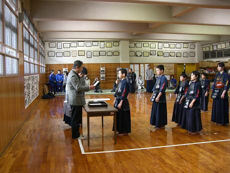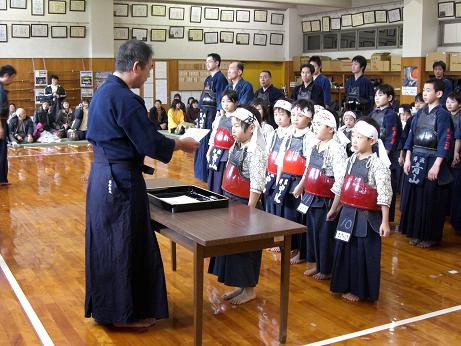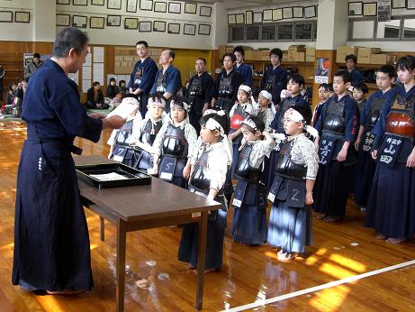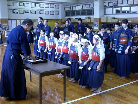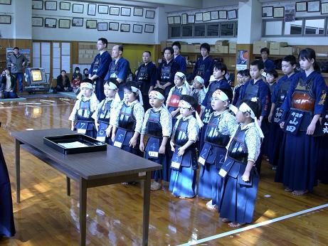 ![]() 居合形の披露(篠原・山田・松田・山本の中1,4人) |