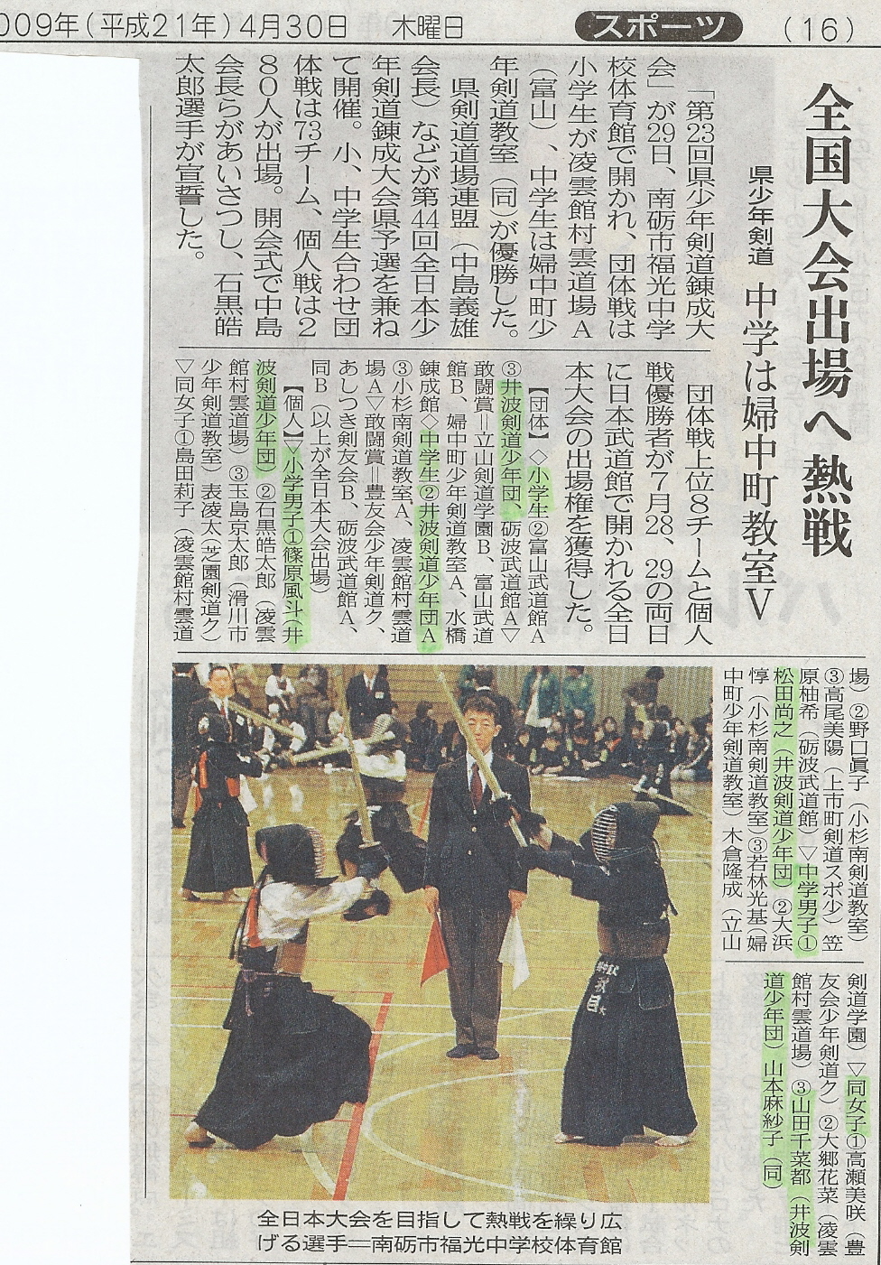 平成21年度 第44回全日本少年剣道錬成大会 兼 第23回富山県少年剣道錬成大会