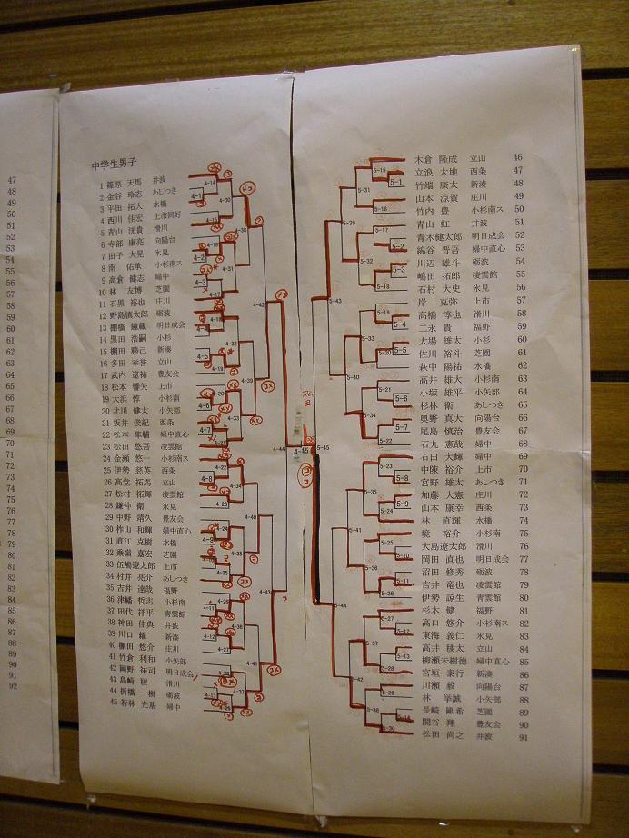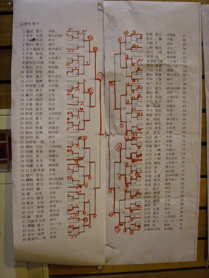 | 2回戦 | 篠原 | 山田 | 青山 | 山本 | 松田 | 3回戦 | 篠原 | 山田 | 青山 | 山本 | 松田 | 準々決勝 | 篠原 | 山田 | 青山 | 山本 | 松田 | ||||||