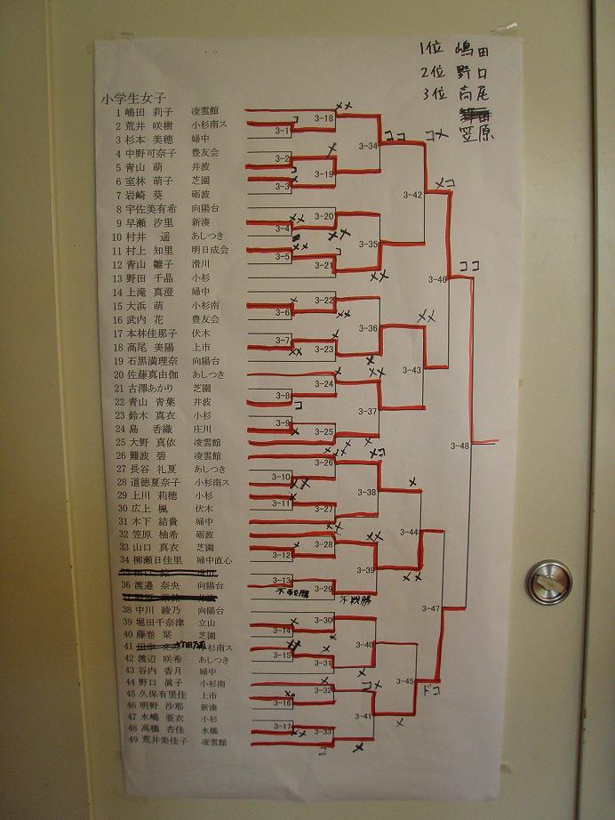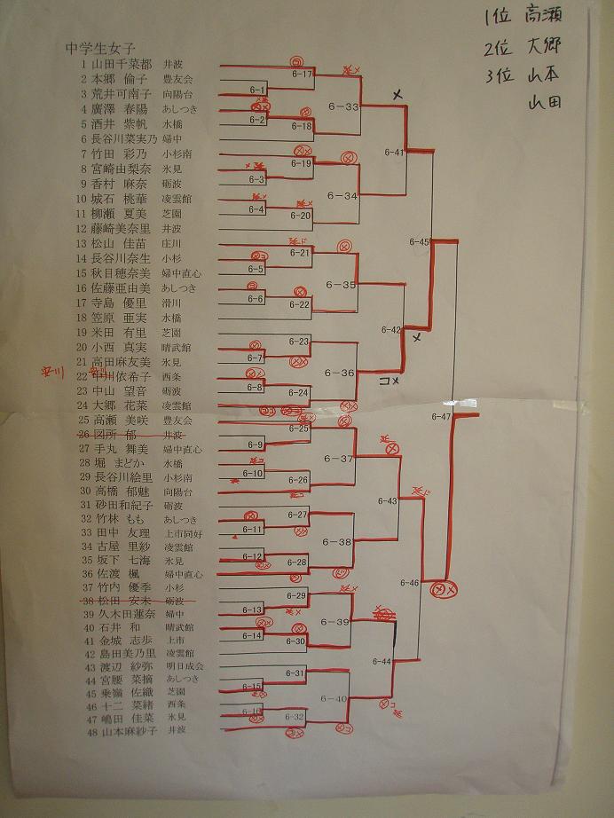 | 2回戦 | 篠原 | 青山若 | 澤 | 青山萌 | 山田 | 3回戦 | 堀田 | 福原 | 伊東 | 川上 | 尾上 | |||
