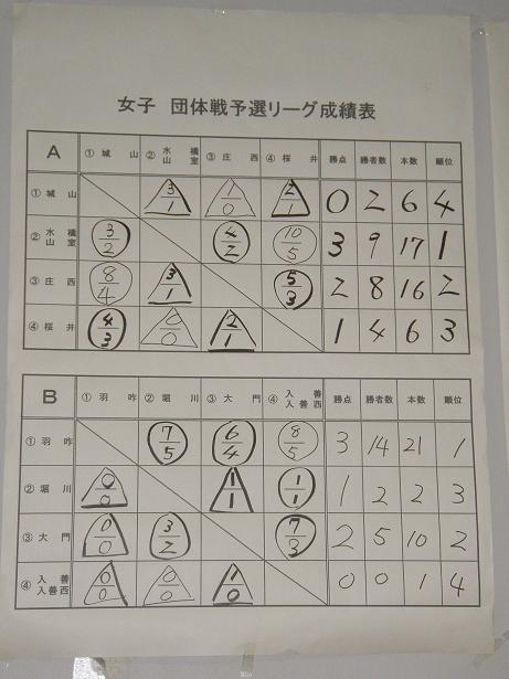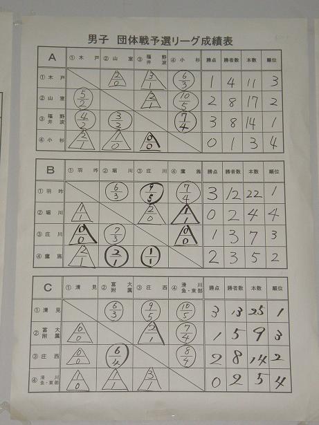 | 木戸 | 山室 | 福・井 | 小杉 | 勝点 | 勝者数 | 本数 | 順位 | |